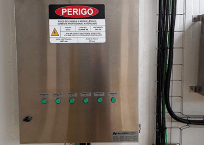 Fornecimento Projetos, Medição e subestação energia 25KV, disjuntor media vácuo 620A, chave seccionamento e fusível HH, 2 Transformador 750 e 300KVA, 13 Painéis QGBT’s, QDFL’s e BCA, Painel todo WEG, 2 Gerador 550 e 260KVA, iluminação interna com calculo luminotécnico em todas áreas, dimensionamento do cabeamento, aterramento, SPDA, infra em eletrocalhas, leito escada, leitos aramado em inox.