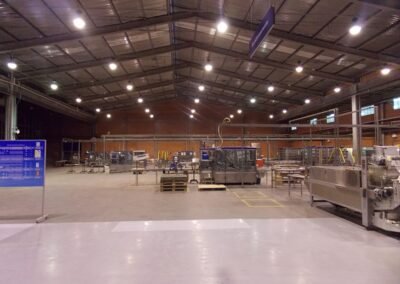 Fornecimento completo nova unidade sendo: Projetos, Medição e subestação energia 15KV, disjuntor media vácuo 620A, chave seccionamento e fusível HH, Transformador 500KVA, 6 Painéis QGBT’s, QDFL’s e BCA, Painel todo WEG, iluminação interna e externa com calculo luminotécnico em todas áreas, dimensionamento do cabeamento, aterramento, SPDA e infra em eletrocalhas, leito escada, leitos aramado em inox.