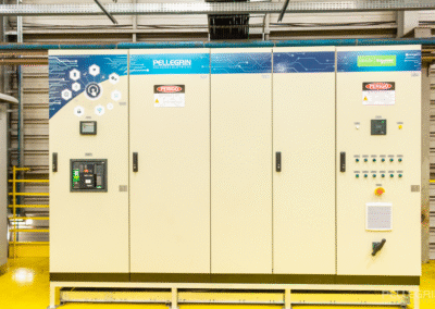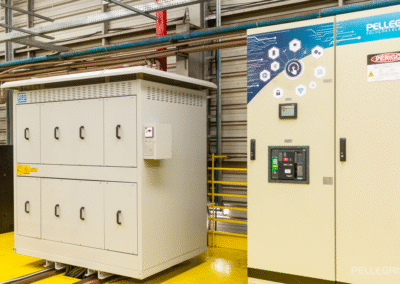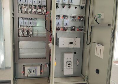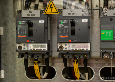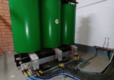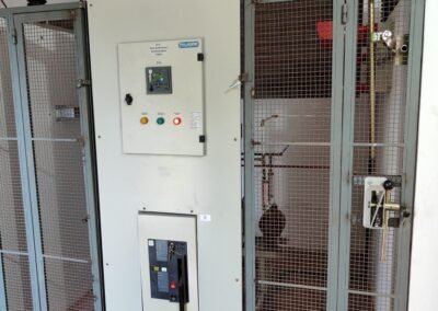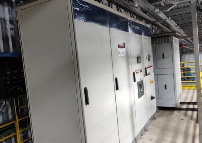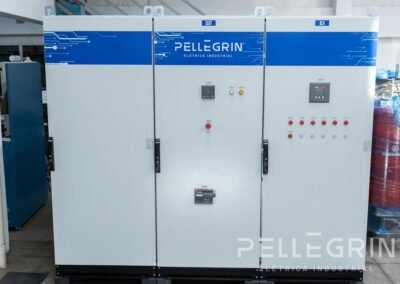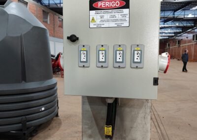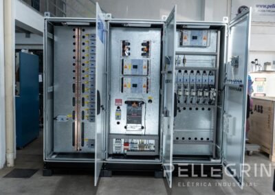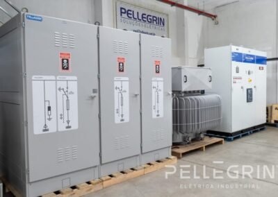 2° – Novo prédio Usinagem foi fornecido Projetos nova subestação 15KV em cubículo blindado em mezanino, com chave seccionamento e fusível HH, rede média tensão com infra estrutura, Transformador 1500KVA a seco, 3 Painéis QGBT’s Disjuntor Geral 2500A e BCA, Painel todo Schneider, Infra e cabeamento do Trafo até Painéis e ligação. O Painel QGBT conta com o disjuntor geral Masterpact MTZ.