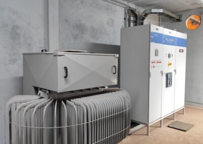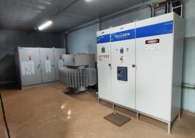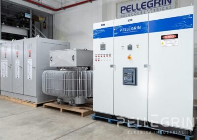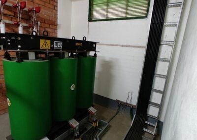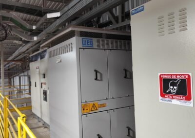 Fornecimento completo nova unidade sendo: Projetos, Medição e subestação energia 15KV em cubículos metálico, disjuntor media vácuo 620A, chave seccionamento e fusível HH, rede media tensão, Transformador 300KVA, 8 Painéis QGBT’s, QDFL’s e BCA, Painel todo WEG, iluminação interna e externa com calculo luminotécnico em todas áreas, dimensionamento do cabeamento, SPDA e aterramento.