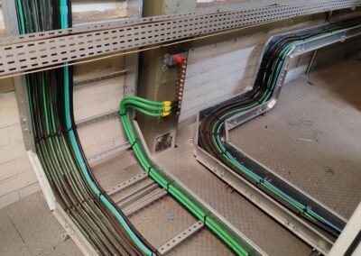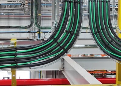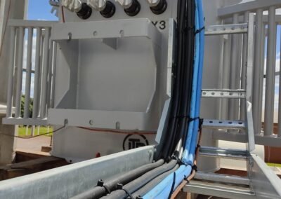 Neste projeto foi usado infra estrutura de descidas em leito aramado, com endereçamento de cabos por meio de Tags.