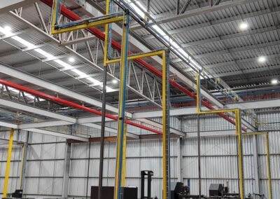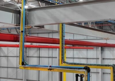 Fornecimento de projetos e execução de rede ar comprimido e fluido de corte para todo prédio alimentando máquinas e equipamentos.