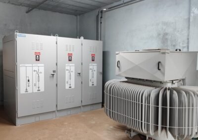 Fornecimento Projetos nova subestação 15KV, com chave seccionamento e fusível HH, rede media tensão com infra em leito escada, Transformador 1500KVA a seco, 4 Painéis QGBT’s Disjuntor Geral 2500A e BCA, Painel todo Schneider, Infra e cabeamento do Trafo ate Paineis e ligação.