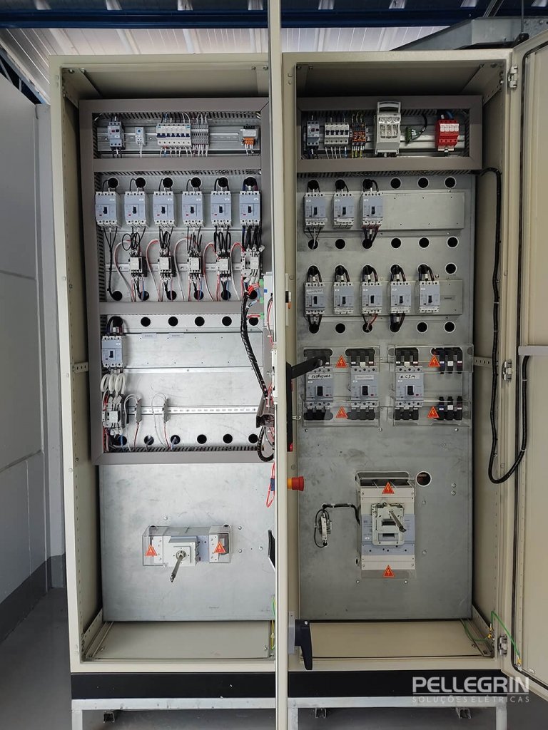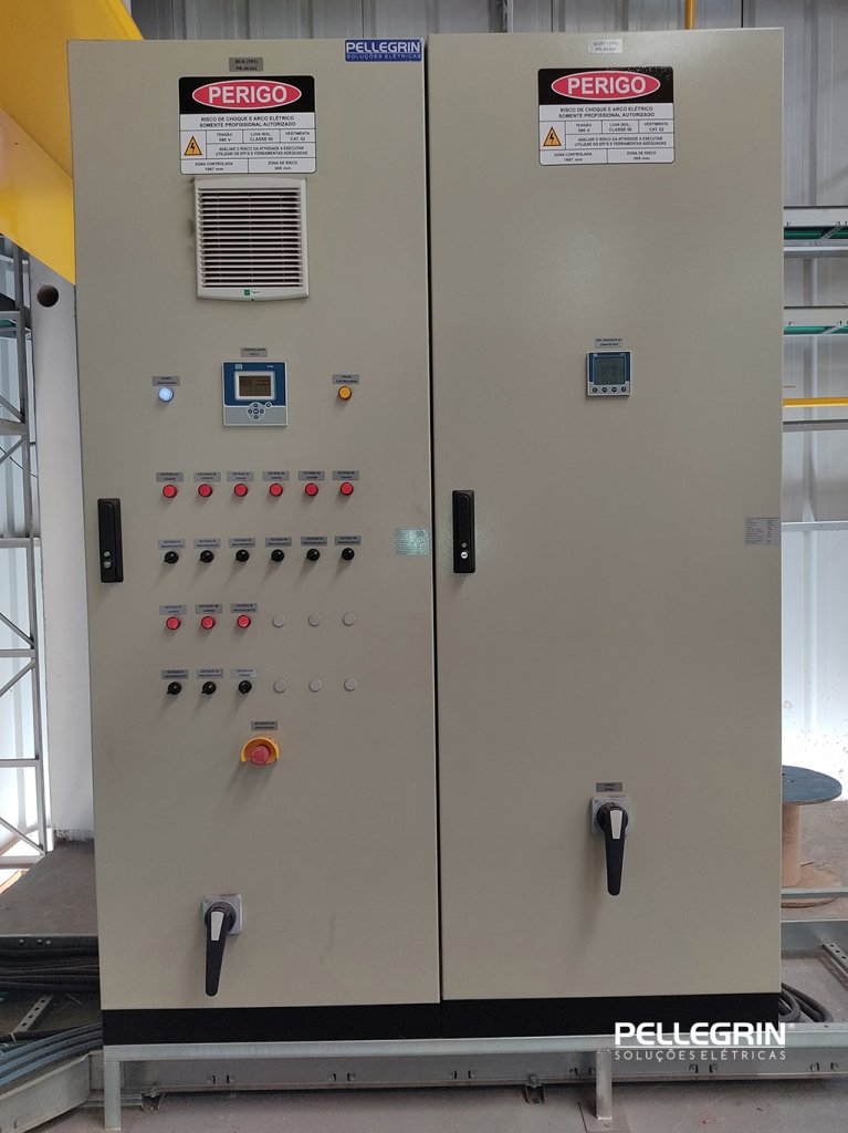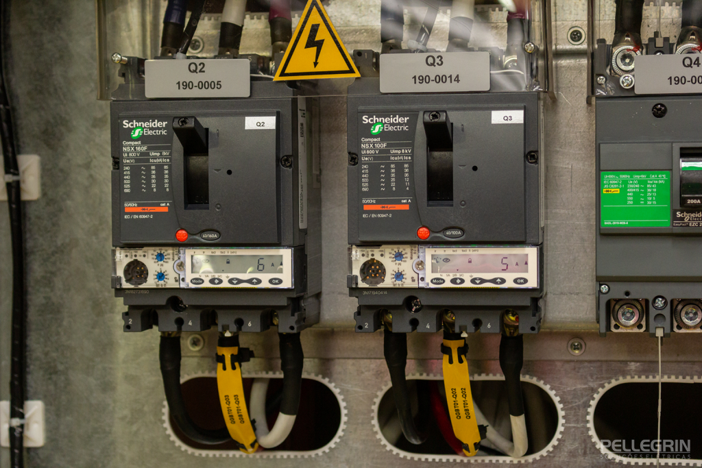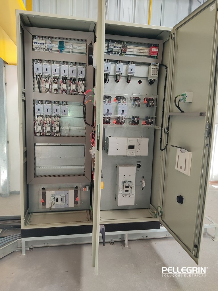 2° – Novo prédio Usinagem foi fornecido Projetos nova subestação 15KV em cubículo blindado em mezanino, com chave seccionamento e fusível HH, rede média tensão com infra estrutura, Transformador 1500KVA a seco, 3 Painéis QGBT’s Disjuntor Geral 2500A e BCA, Painel todo Schneider, Infra e cabeamento do Trafo até Painéis e ligação. O Painel QGBT conta com o disjuntor geral Masterpact MTZ.