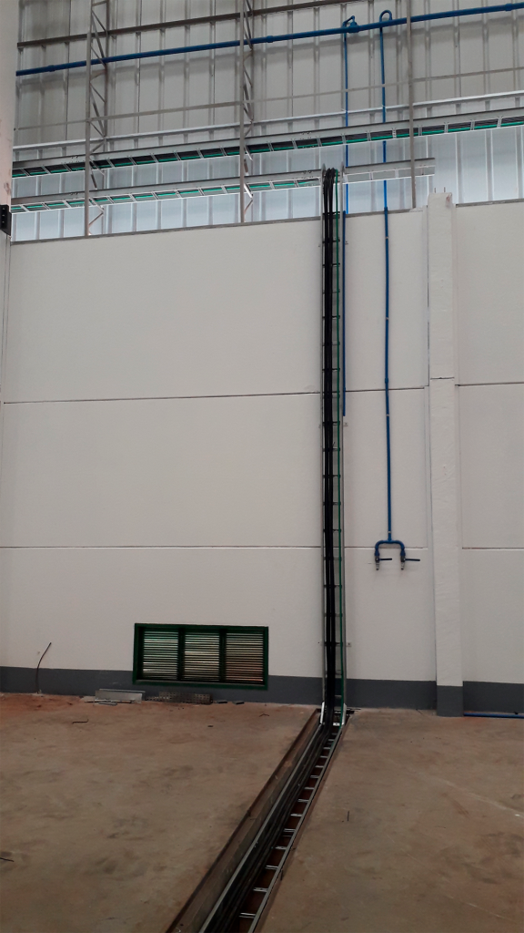 Neste projeto foi usado infra estrutura de descidas em leito aramado, com endereçamento de cabos por meio de Tags.