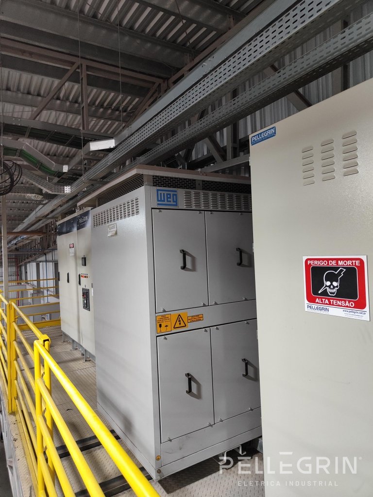 Fornecimentos da Ampliação: Projetos, Medição e subestação energia 15KV, disjuntor media vácuo 620A Schneider, chave seccionamento e fusível HH, Transformador 300KVA, 2 Painéis QGBT e BCA, Painéis WEG, aterramento , SPDA, dimensionamento do cabeamento, aterramento, SPDA e infra em eletrocalhas e leito escada.