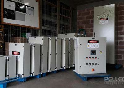 Fornecimento completo nova unidade sendo: Projetos, Medição energia 15KV em cubículos metálico, disjuntor media vácuo 620A, chave seccionamento e fusível HH, rede media tensão, Transformador 75KVA, 5 Painéis QGBT’s, QDFL’s, Painel todo WEG, iluminação interna e externa com calculo luminotécnico em todas áreas, aterramento e SPDA.