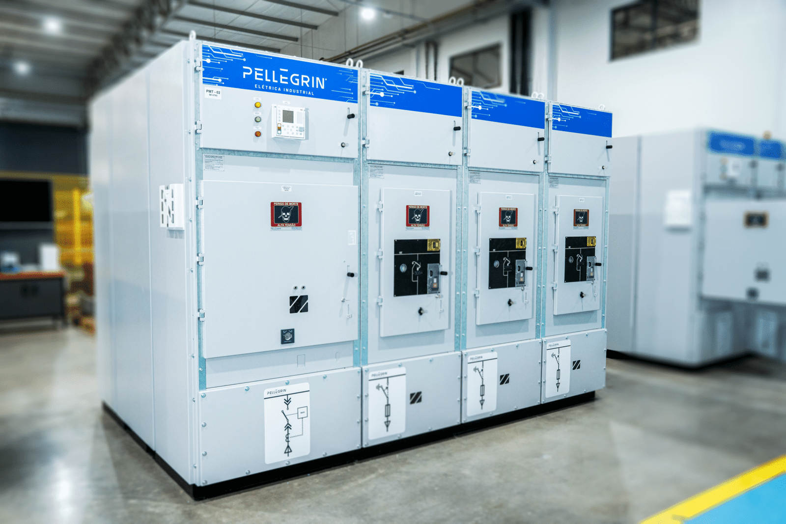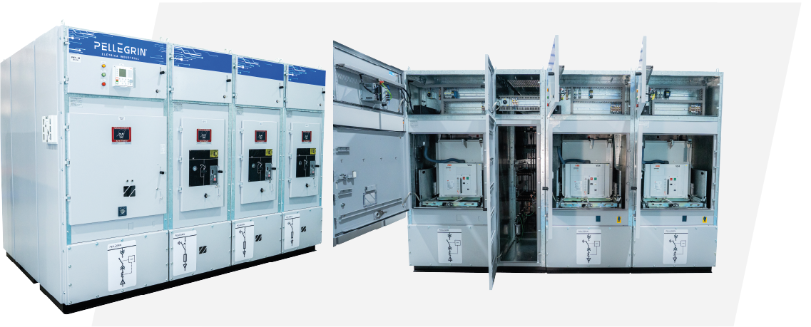 Painel metálico blindado (metal enclosed) para proteção e seccionamento de transformadores ou redes de média tensão, com instalação ao tempo ou em ambiente abrigado.